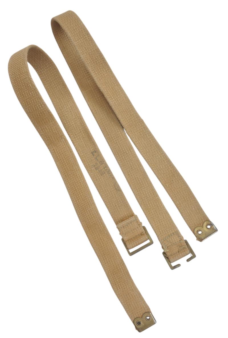 Pair Canadian large Pack straps for affixing helmet to large pack or at rear for carriage... Both faintly marked & dated 'ZL&T 1942' .