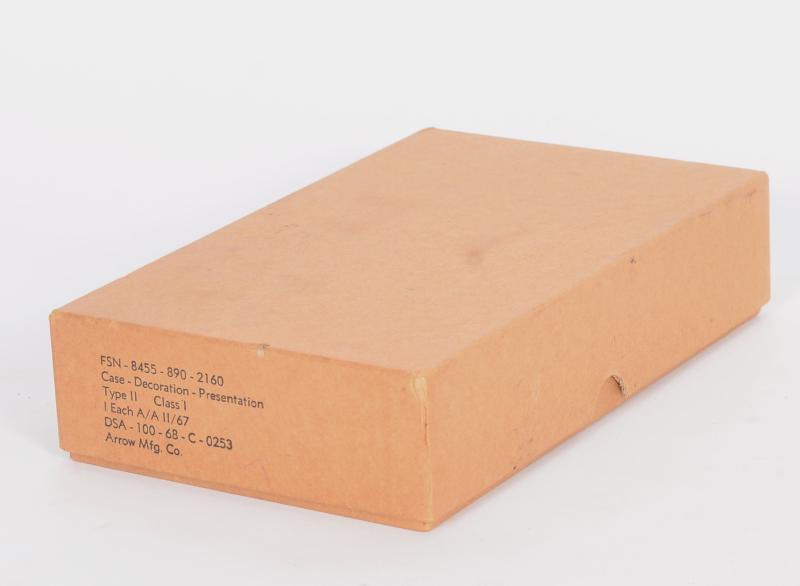 A very good complete set as awarded with its luxury fitted case and outer cardbord storage box . Medal has also a ribbon bar and enamel pin for civilian dress . Box well DSC and FSN marked for the Vietnam period .