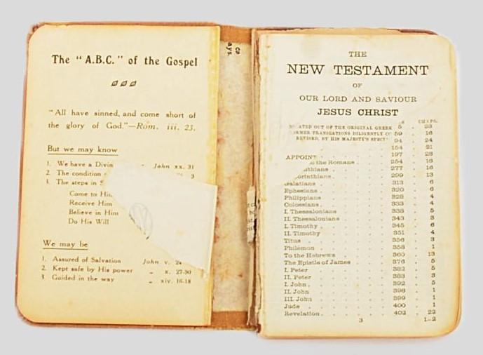 A standard issue bible dated 1916 in good order but with a lose cover ( this could be repaired with ease) in otherwise could clean condition .A great little display piece