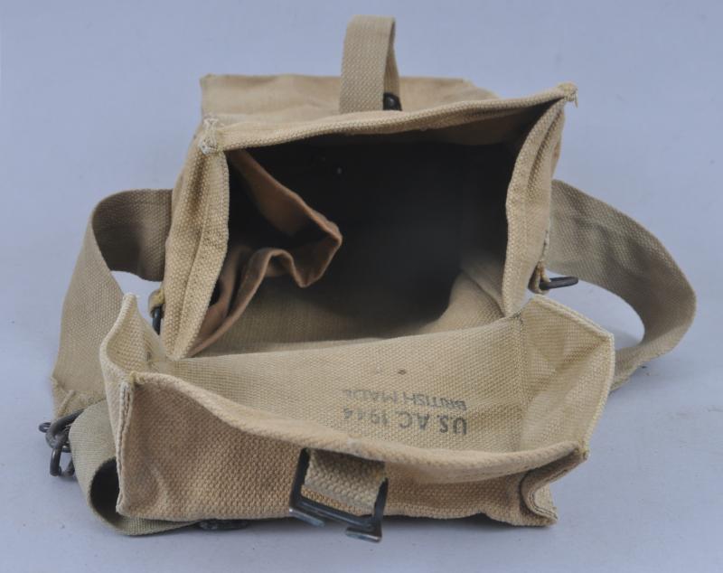 Rare British Made General Purpose bag for extra ammunition etc with very clear 1944 stamp. Appears to be unissued , comes with unmarked utility strap.