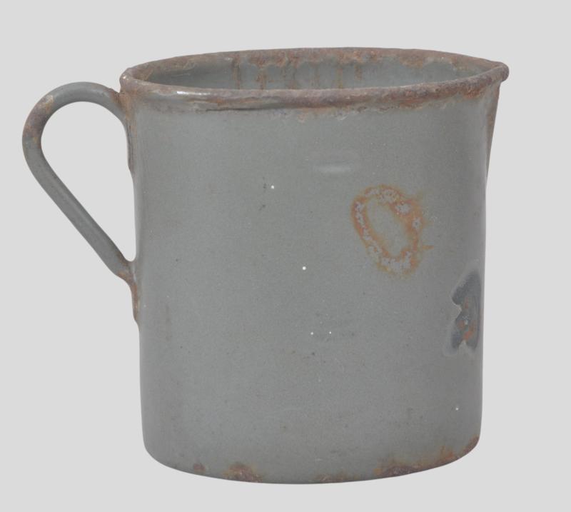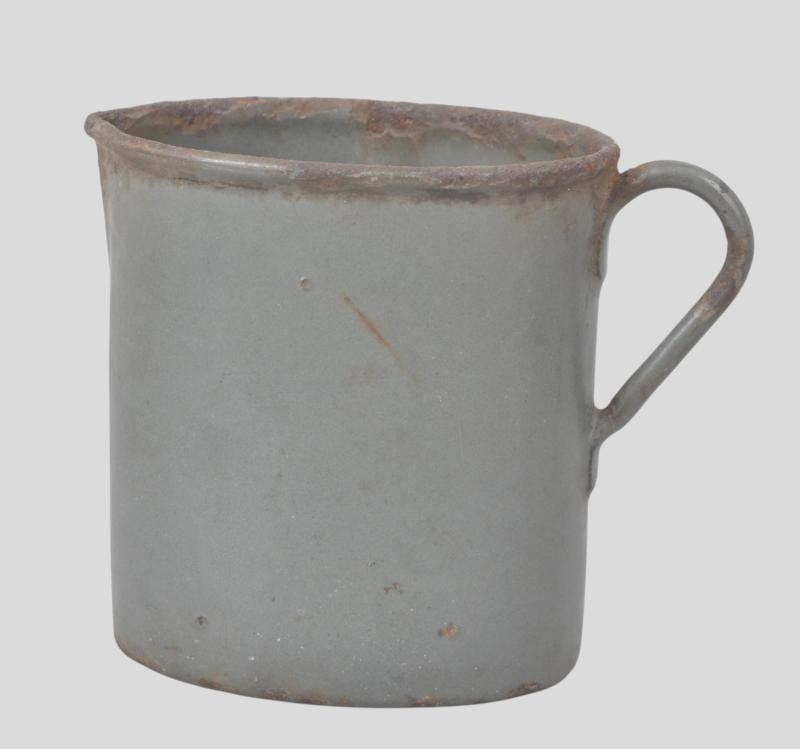 German soldiers drinking cup for personal use . The WW1 waterbottles did not have their own cup so these were carried seperately by each man along wth their messtins & eating utensils. Marked on bottom to maker 'Silesia' with date 1917.