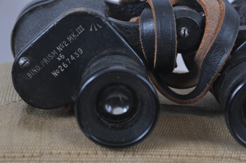 A pair of X6 british No.2 MkIII binoculars dated 1944 , classic WW2 British army issue.