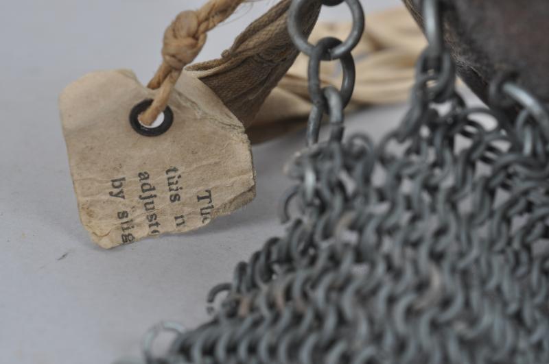 Probably the best 'named' example of the iconic WW1 British Tank Crew "Splatter " mask that I have ever had showing no wear & still with remains of its 'adjustment' instruction card still tied onto it with the original string. This label gave information on how to fit the tying tapes to your head correctly. The name 'POLLEY' has been written across the front of the leather facepiece lending itself to further research.