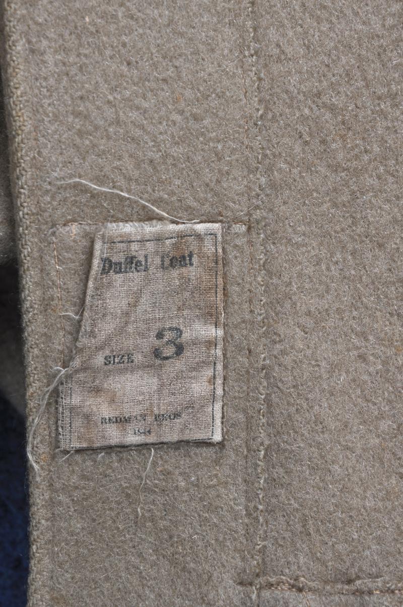 This example is extremely scarce still having its calico clothing label with the nomenclature 'Duffel Coat' & 'Size 3' . Date is a very clear 1944. .