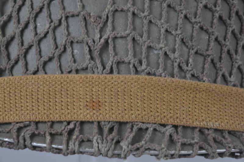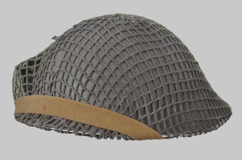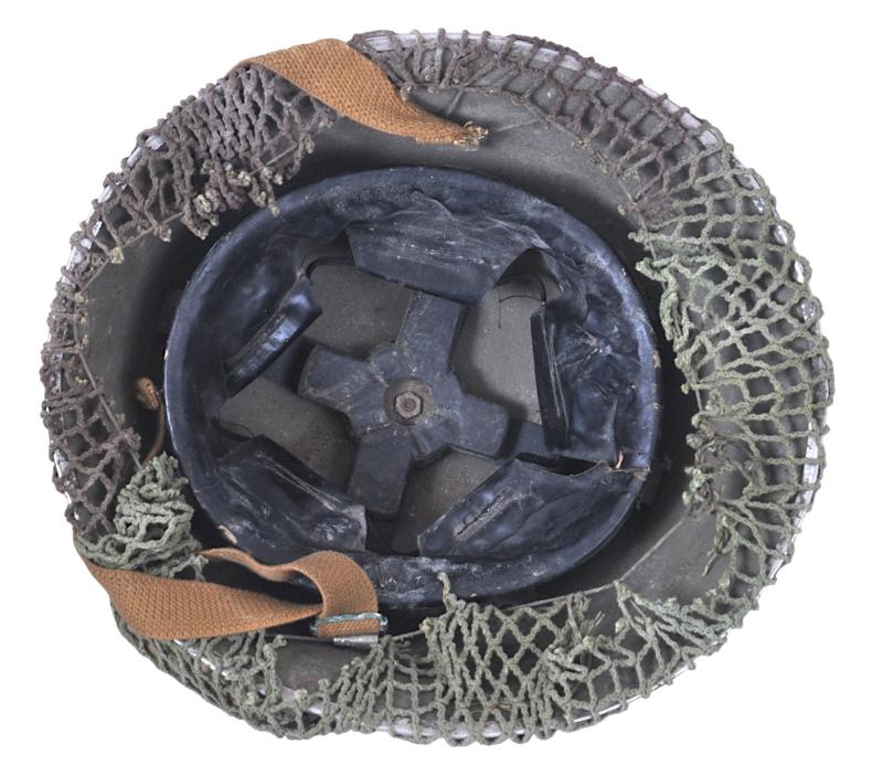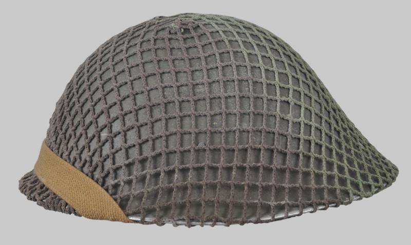 Made in Great Britain as was standard for Canadian used MkIII Turtle helmets these were supplied to Canadian forces & worn in the NW Europe theatre of operations from D-Day 1944 onwards. Helmet is finished in factory khaki/green paint with a Canadian two tone camouflage net & Canadian First Field Dressing fitted under the net. Helmet cradle has clear maker & date 'FFL 1944' .