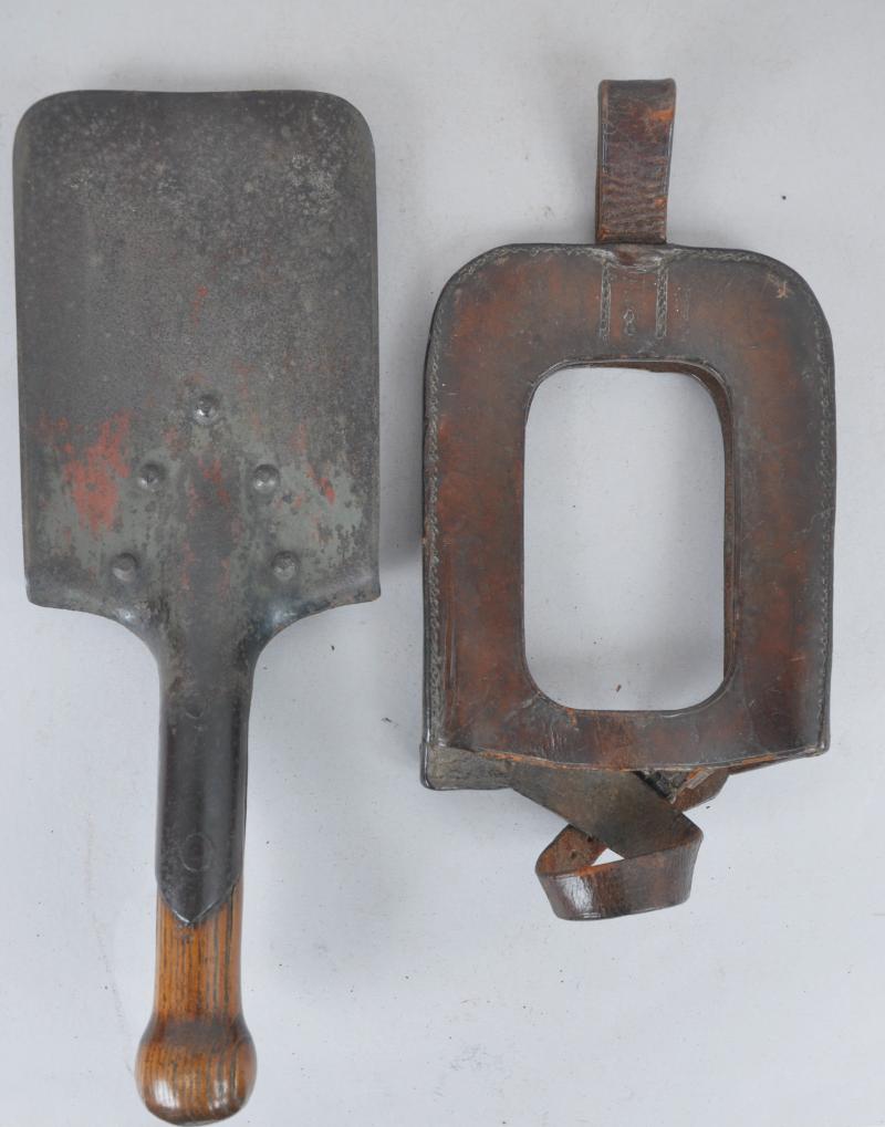Rare textbook WW1 German MG gunners shovel complete with its 100% correct brown leather carrying case.