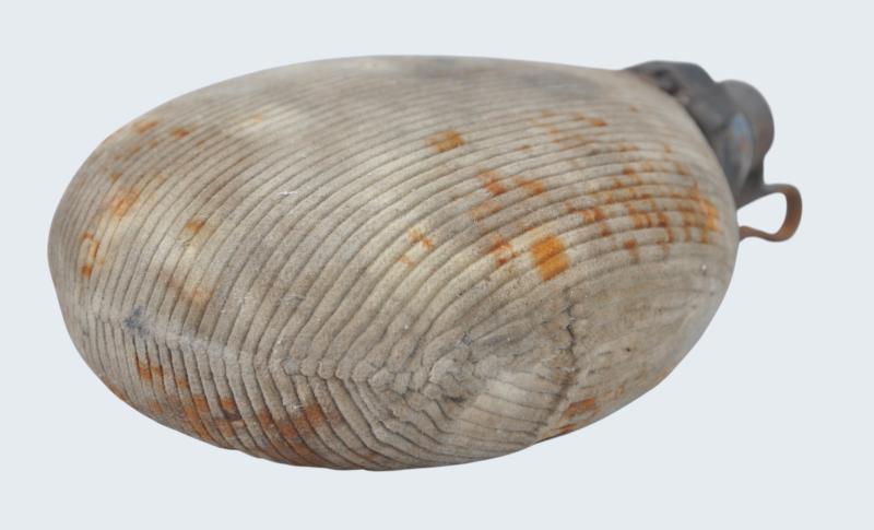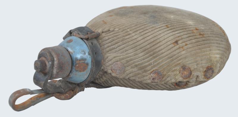 Untouched WW1 German field flask this being a blue enamel version with brown corduroy cover.