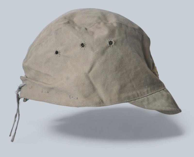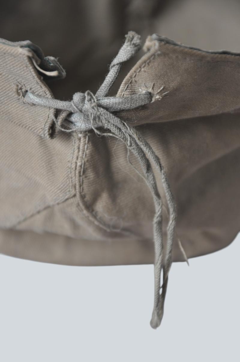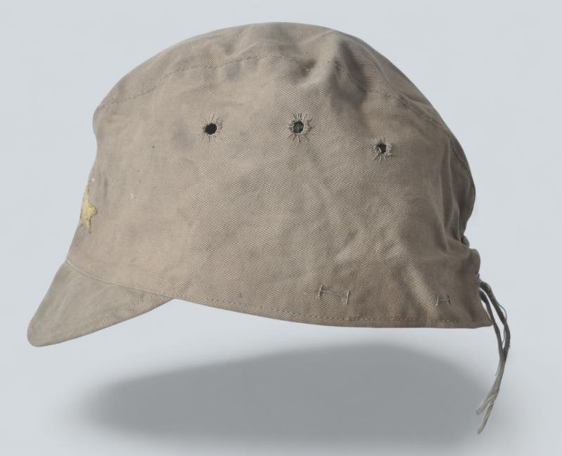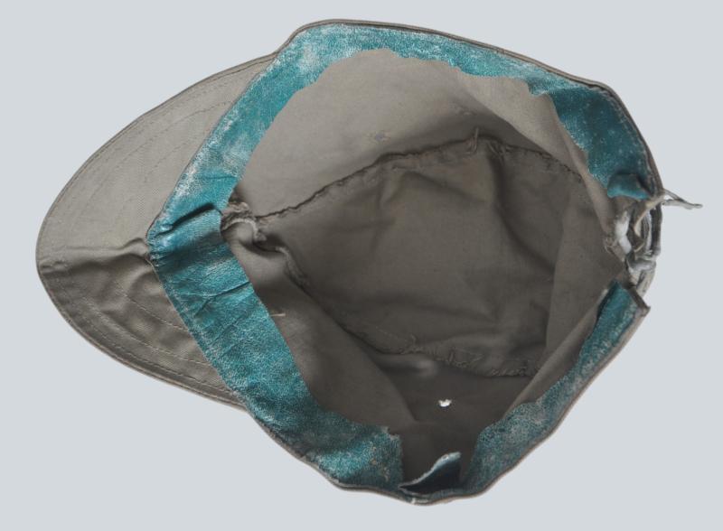 Untouched Japanese field cap in lightweight material with Japanese Imperial star sewn directly to the cap with no backing denoting an early issue. Three stitched holes to each side & adjustment cord to rear hem. Differing sightly from the standard Army issues which are normally found in wool this variation has a green leather sweatband.