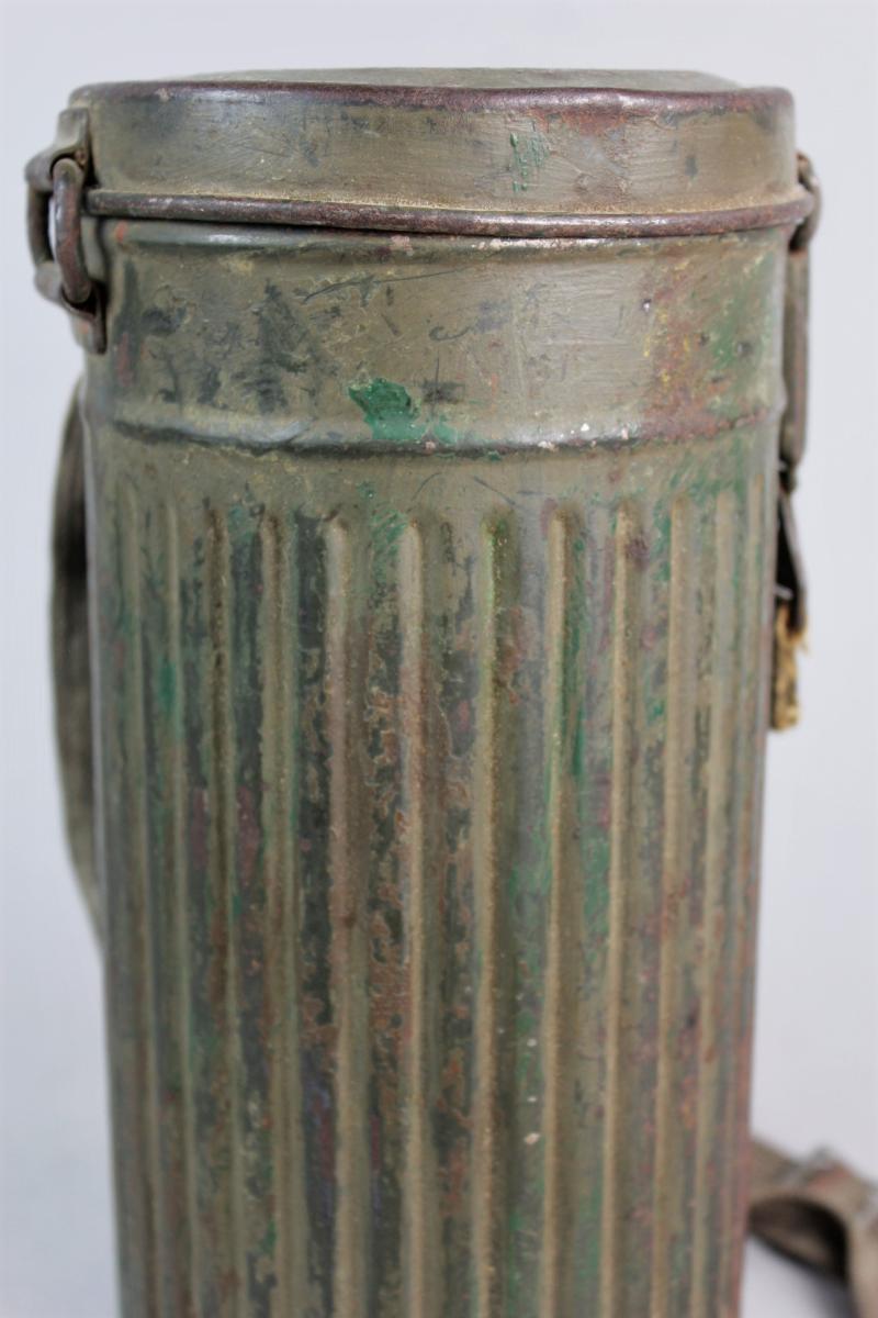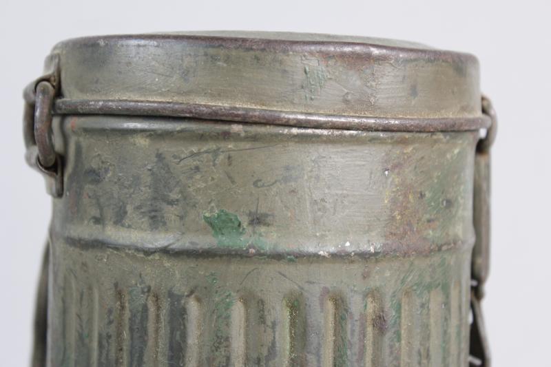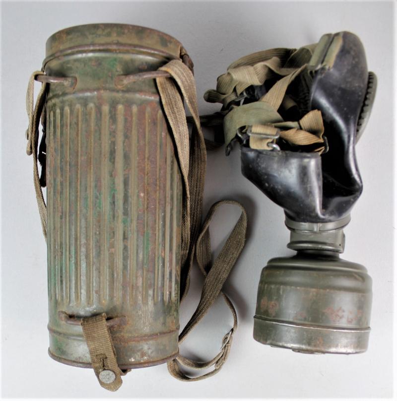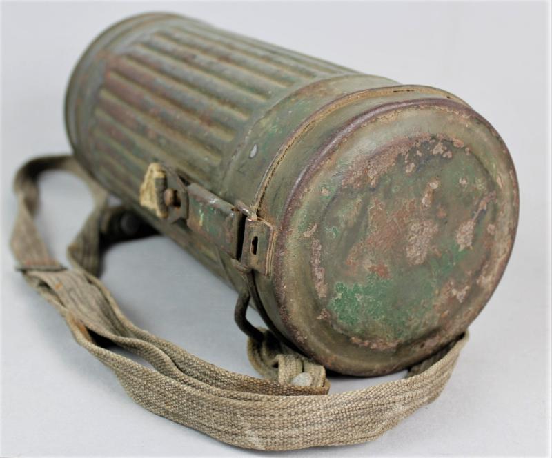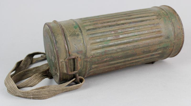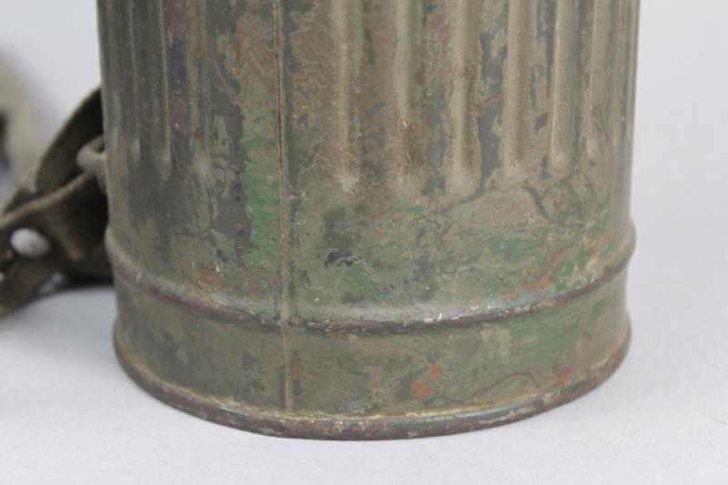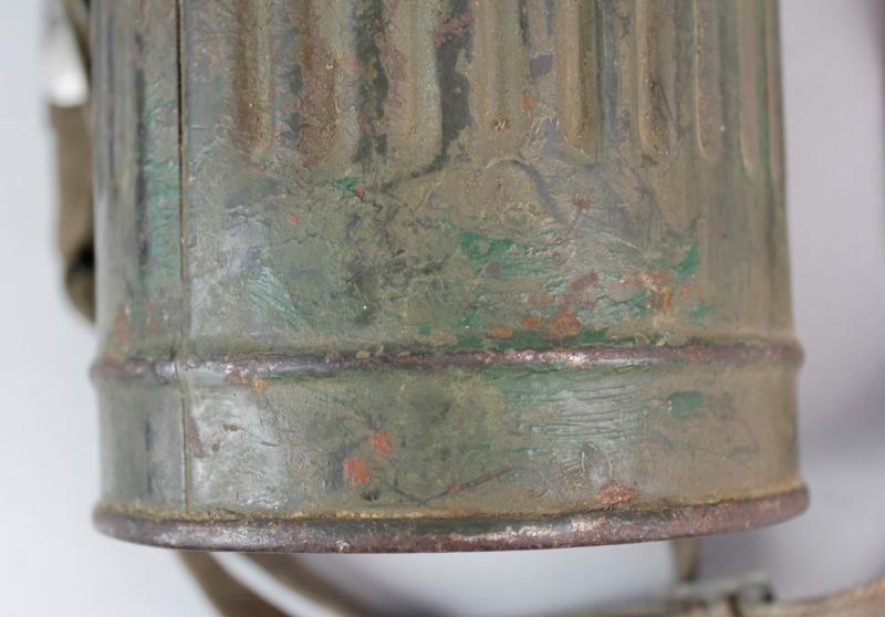 A German Gas mask & canister which has been three colour camouflage overpainted typical of the NW Europe fighting.