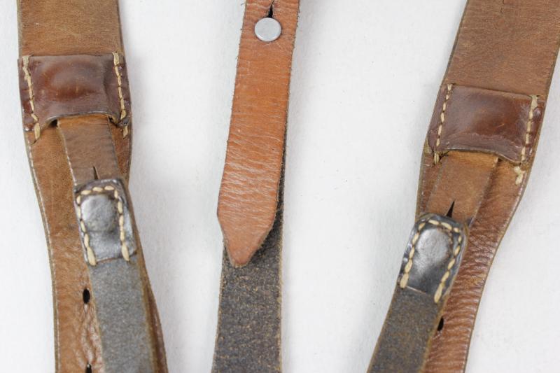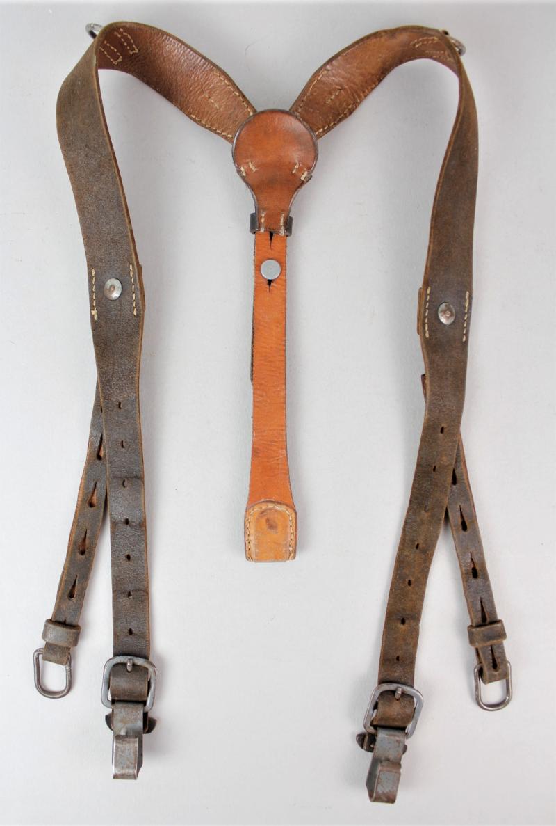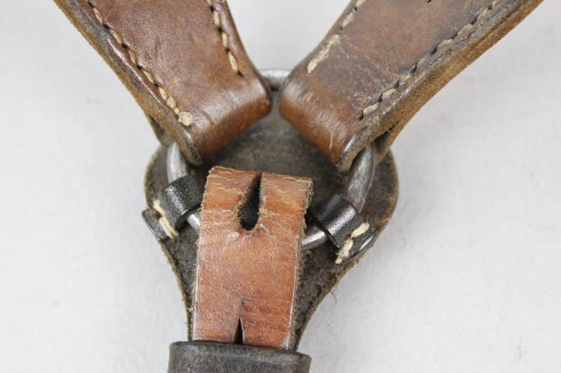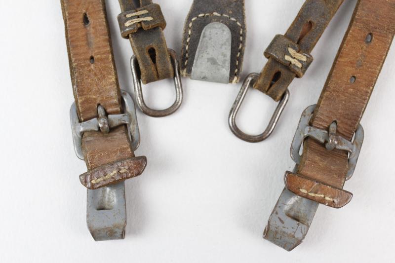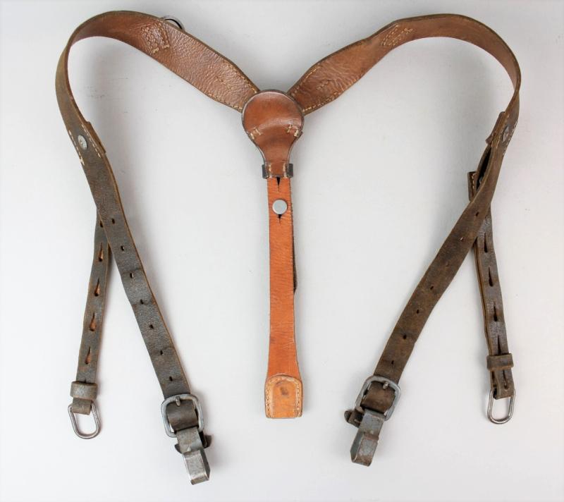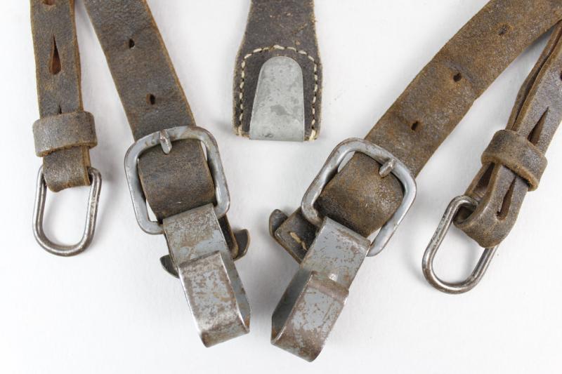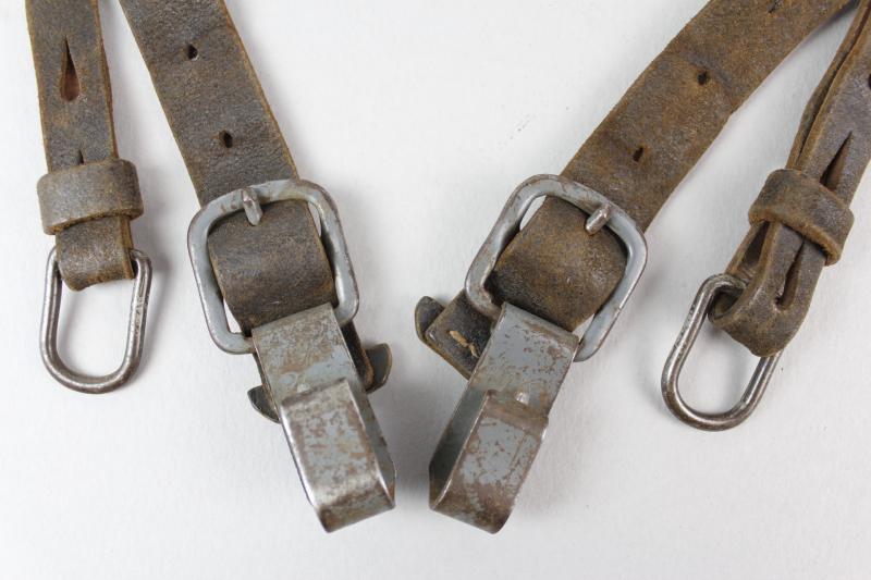 An excellent pair of German equipment Y straps with grey painted steel fittings & faint RB number to reverse. Leather still supple & perfectly usable for mannequin display.