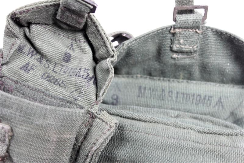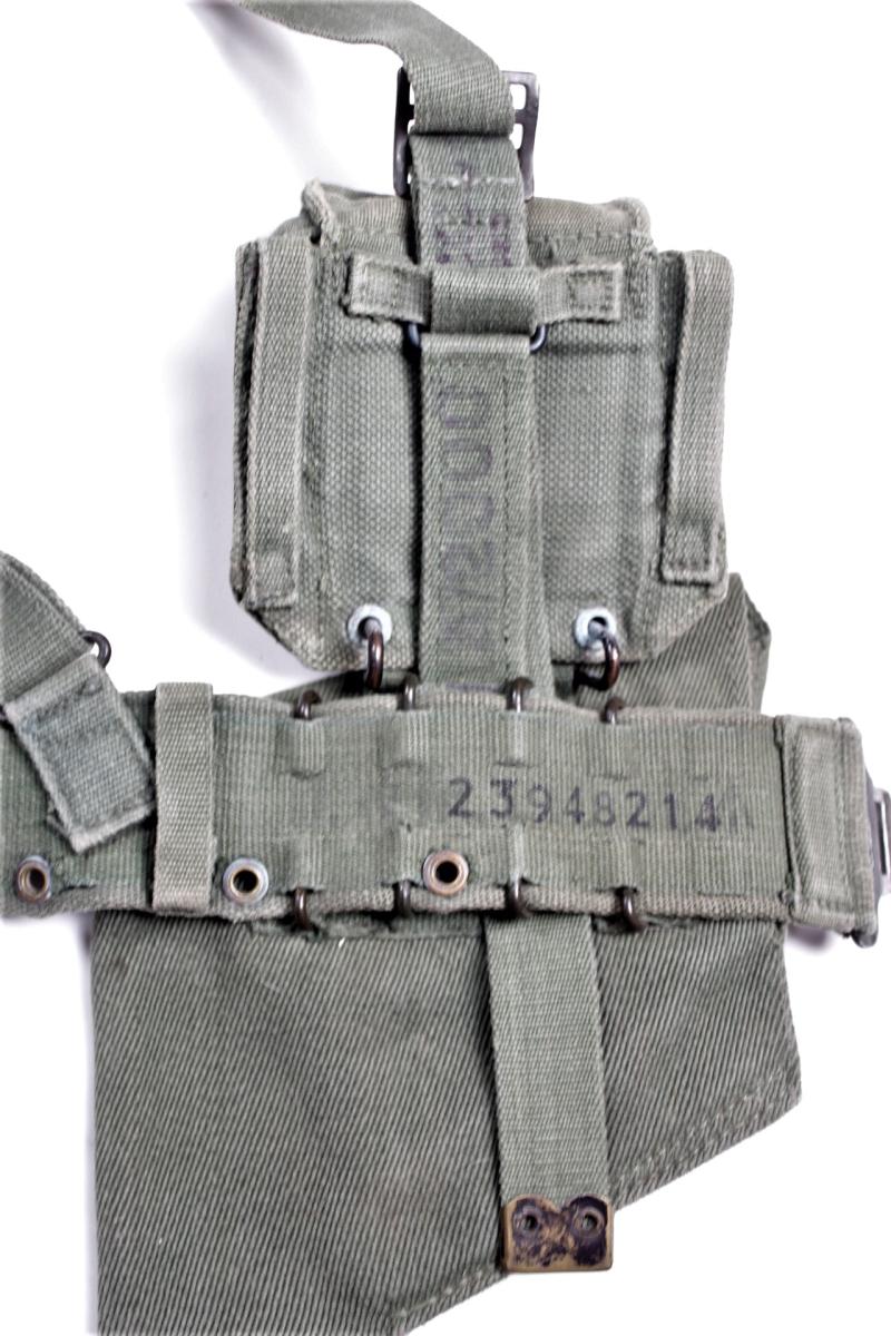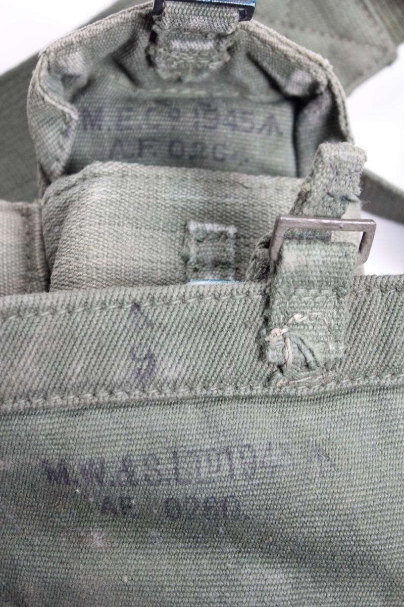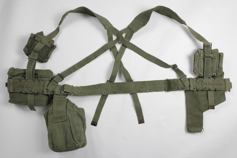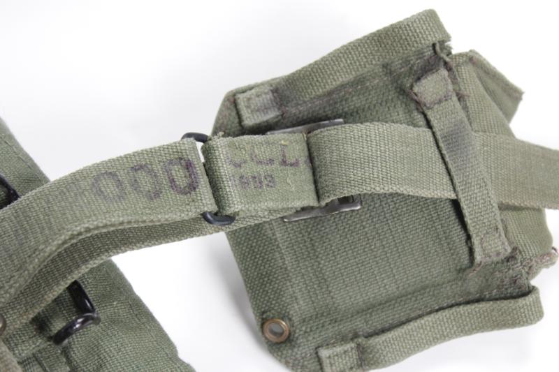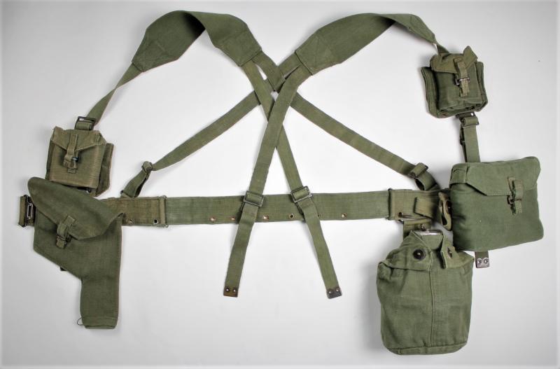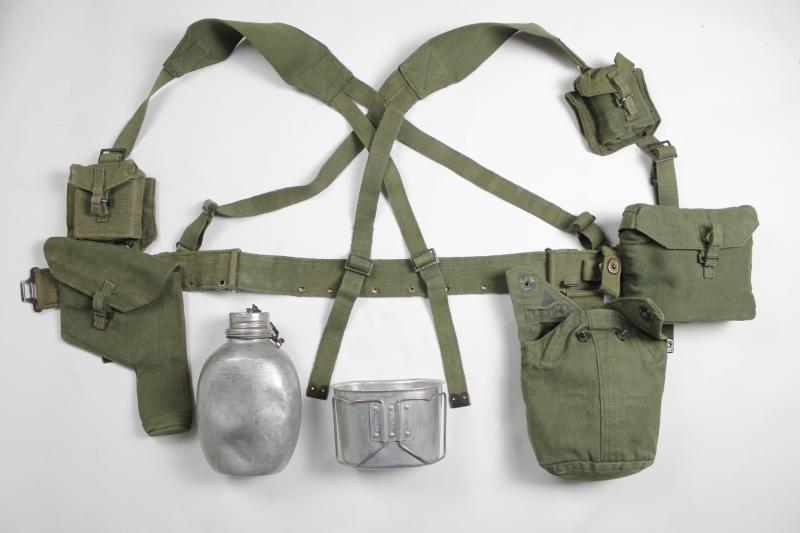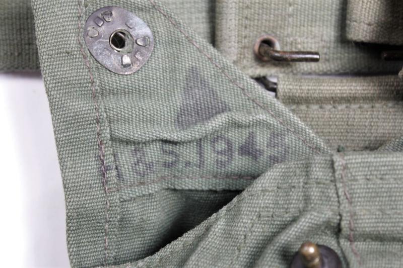 it would be almost impossibe to buy all of the individual components to make up this complete set now , the only parts with illegible dates are the waist belt & brace attachments .. the waterbottle & cup are '1944 PAT' marked but post 1945 dated .