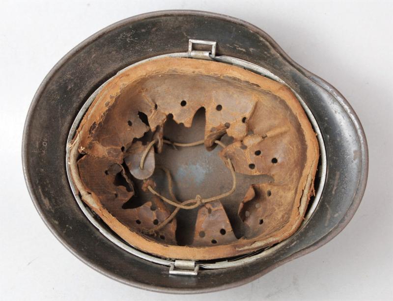 Both the national shield & second pattern luftwaffe decal are largely remaining with overall service wear to exterior & a very natural age patina having formed. Helmet is an 'SE64' production with lot number ' 4007 ' to rear skirt. Interior has reinforced aluminium liner band which is Berlin maker marked & 1938 dated . Leather lining shows heavy wear with some rot & splitting to the edges from years of loft storage.