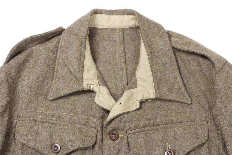 Becoming increasingly more difficult to find in any condition this example looks to be unissued & after a thorough examination I can find no moth holes or nips at all. All buttons are complete & both collar hooks intact. The ink stamped War Department & 'M' coded inspectors code for year 1944 is visible to