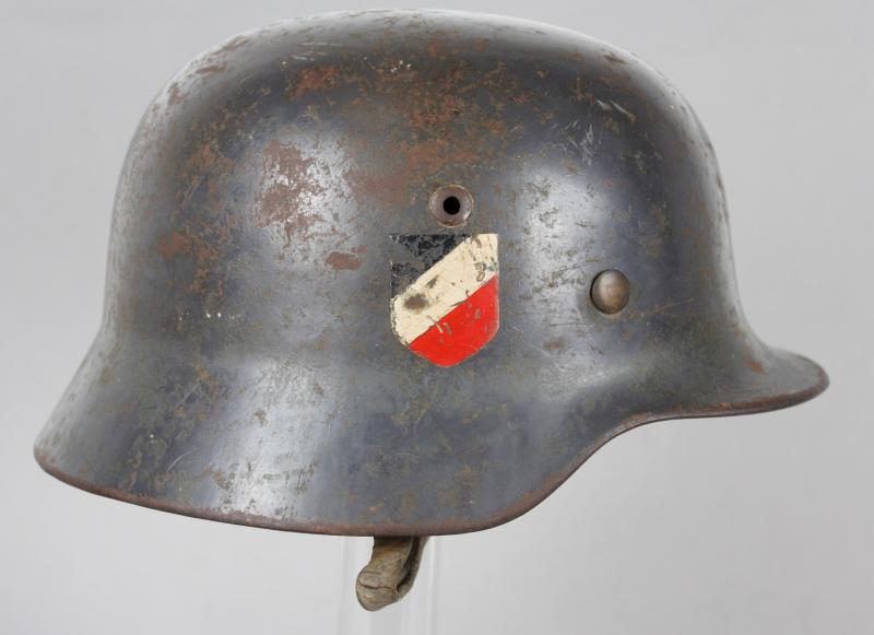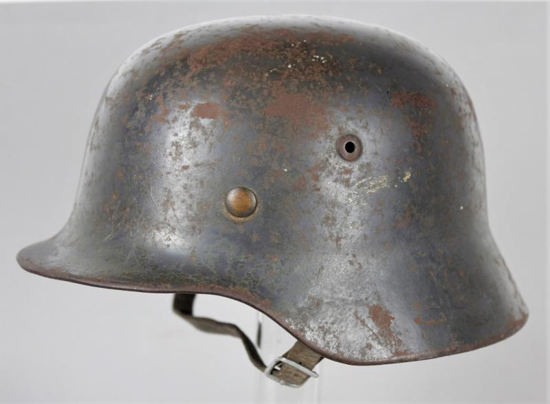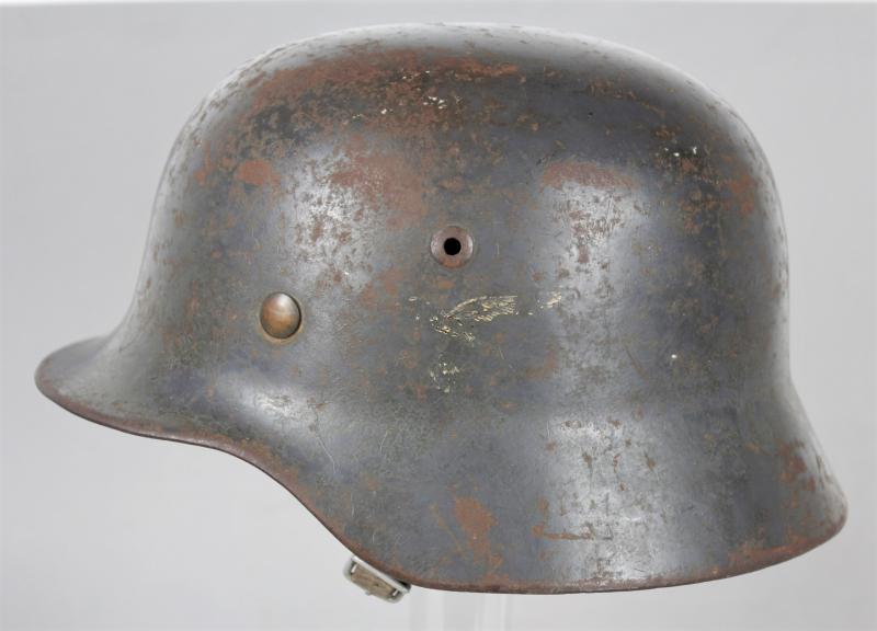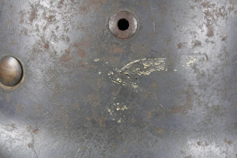 A nice untouched helmet no doubt from a busy Luftwaffe Flak or ground unit fighting in the last days of WW2.