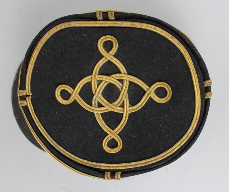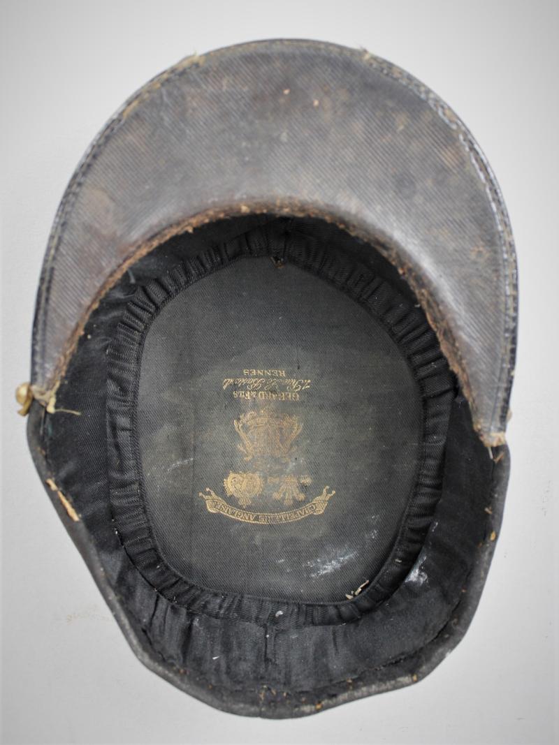 In the 'Polo' style preferred by younger officers the Hungarian knot to top is of the distinctive WW1 style with gold officers chinstrap & artillery chinstrap buttons to each side. With a 'Rennes' tailor logo to interior 'Gerard & Fils' it shows heavy wear from extensive service in WW1 & most likely before.