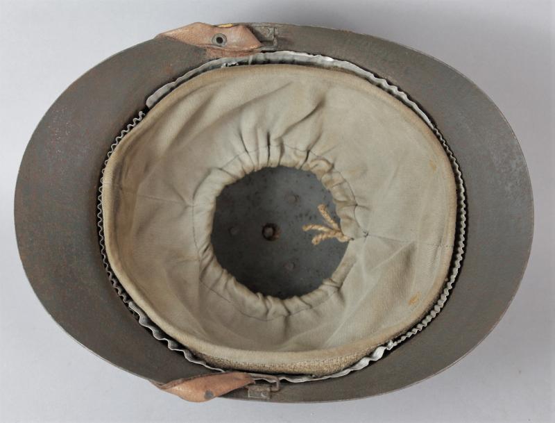 In 1915 Russia was researching producing its own manufactured steel helmets, eventually the Sohlberg helmet was decided upon. This is a very fine example having all its original paint finish, chinstrap & canvas liner with its Adrian style corrugated spacers. All of the configuration is correct. In-depth detail into the history of these helmets shown both in picture format, original drawing format and text within the only work ever produced on the history of the Russian steel helmet published by Ivan Carabanoff for the student of the Russian helmet, a must have publication, published Moscow 2016, text primarily in Russian but with a good degree of English descriptive text.