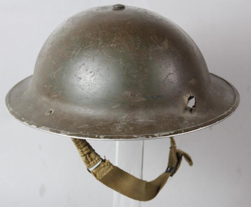 WW2 Canadian Artillery Bullet Damaged Helmet With Remains Of Insignia