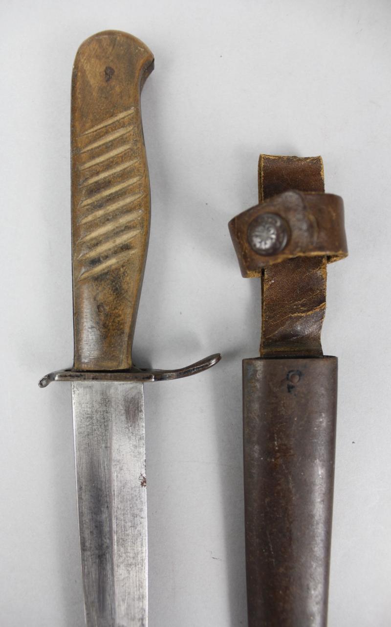 A classic WW1 German trench knife complete with sheath & undamaged leather belt loop .