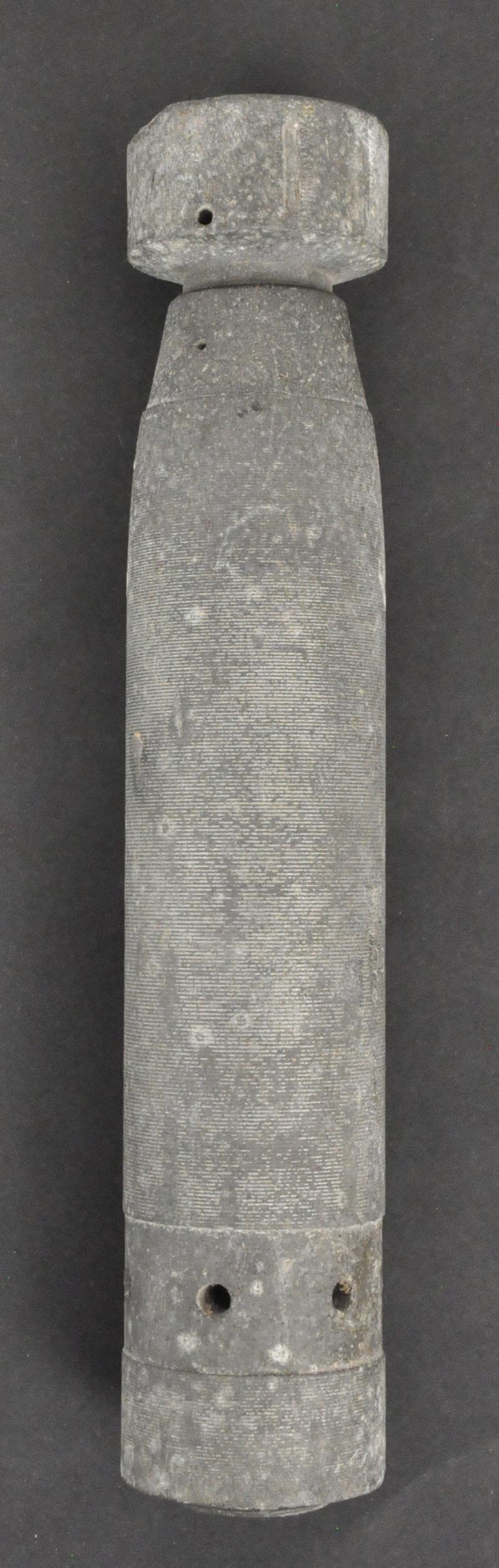 Dated 1937 & Weimar marked it has been put back together the wrong way round with the nose cap put into the place of where the fins would have been & vice versa .