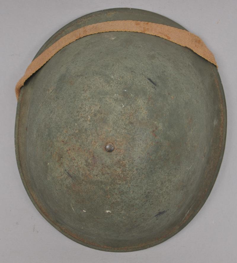 In its original factory green paint this helmet bears the marking 'MKIII 1944' stamped into the rear of the shell & ' BMB 11 1944 ' to liner cradle. With its distinctive high rivets the liner is totally original to the helmet with no disturbance to top liner screw. Webbing chinstrap is the correct later version for this helmet.