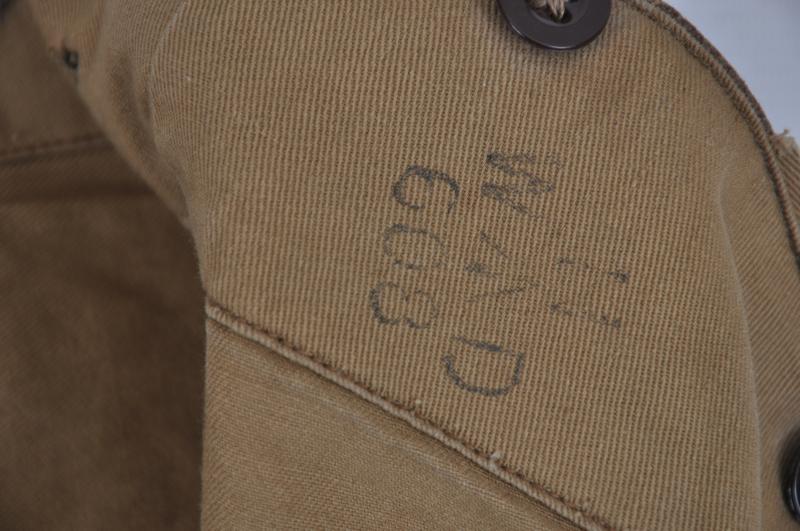 Pair of 1940 pattern battledress trousers with 'N' coded WD inspection stamp for the year 1943.