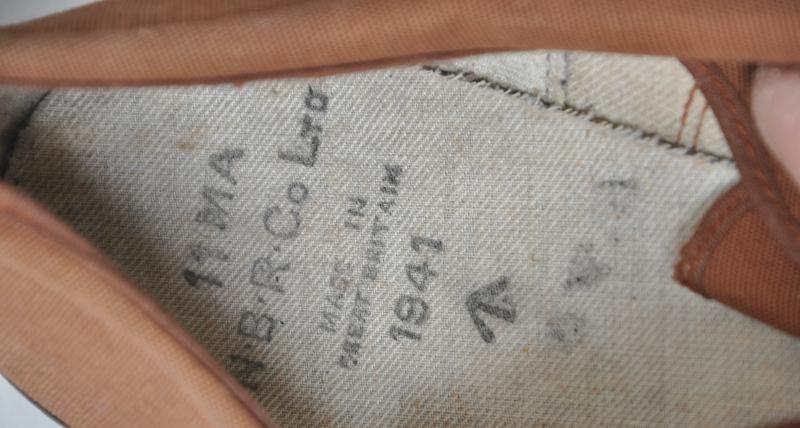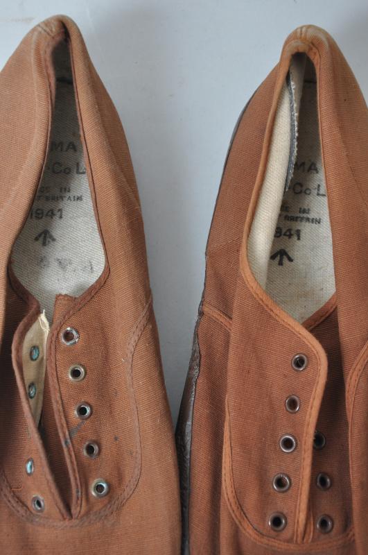 Rare early war British military plimsolls dated 1941 with brown canvas uppers & leather toecaps.