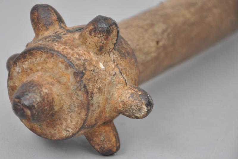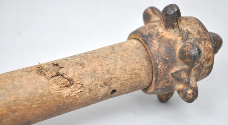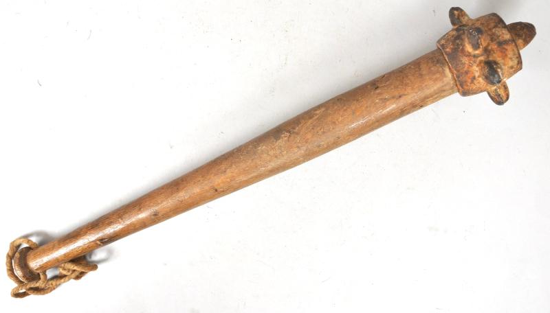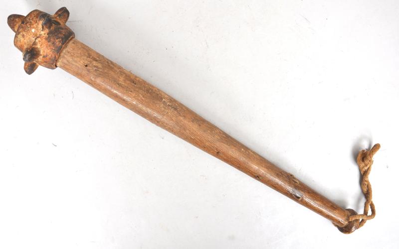 Rare WW1 British Trench Club with shrapnel blast damage to its wooden handle.
