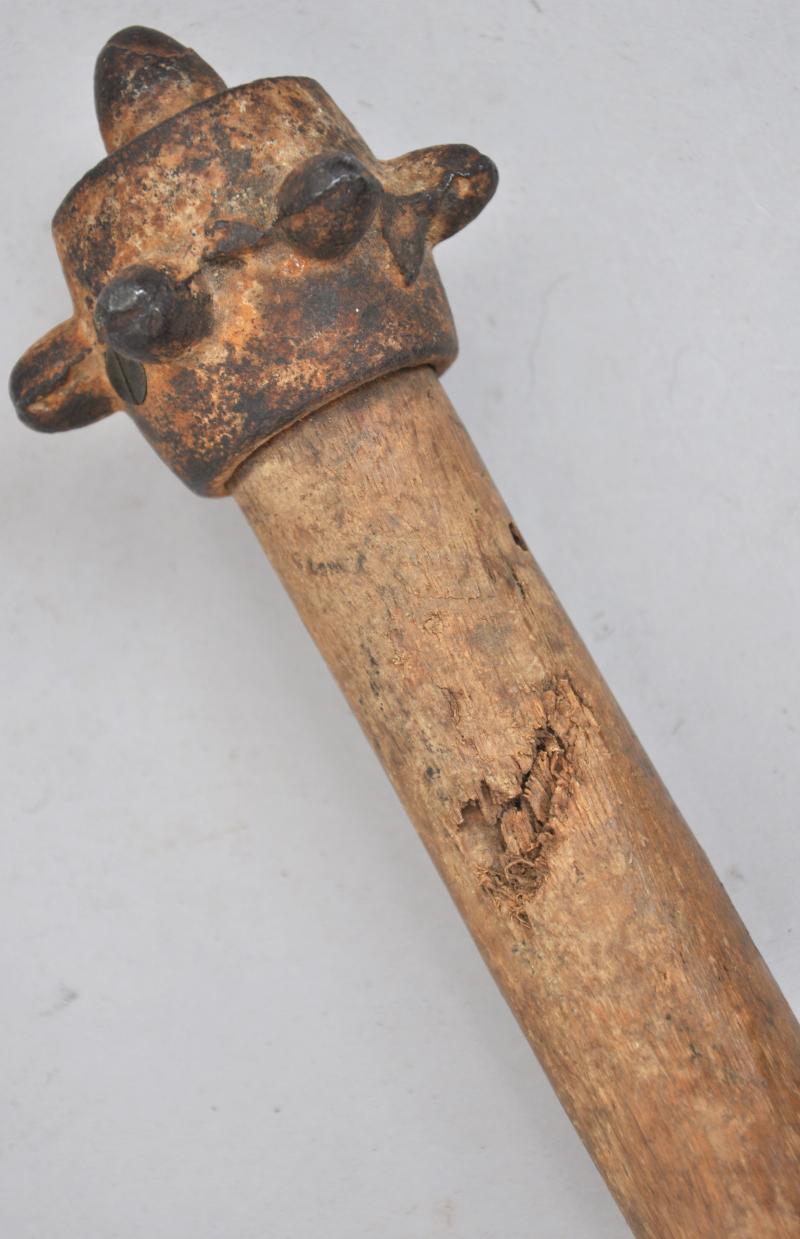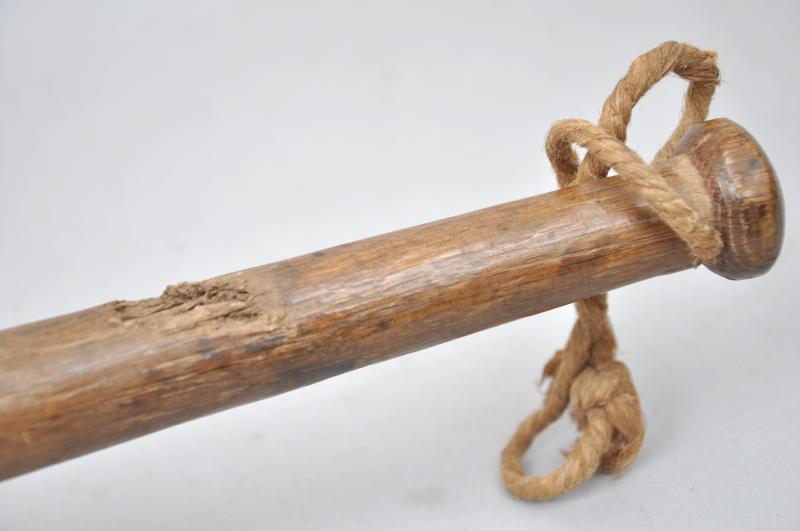 This piece is of the well known club pattern with a long baton like wood handle. This shows splintering in two places , please see images.