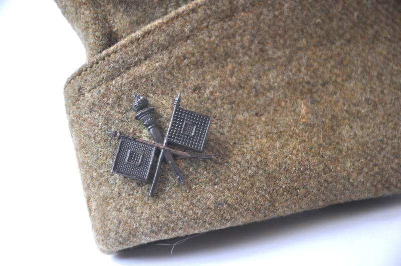 A WW1 US side cap of the Signal Corps in very good condition. Has Depot contract label to sweatband ' Hirschberg & Co , Depot Contract New York 7 1/8/'.