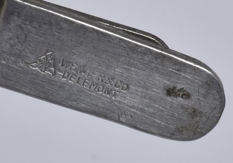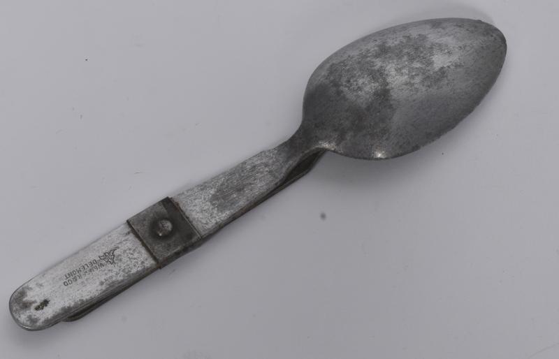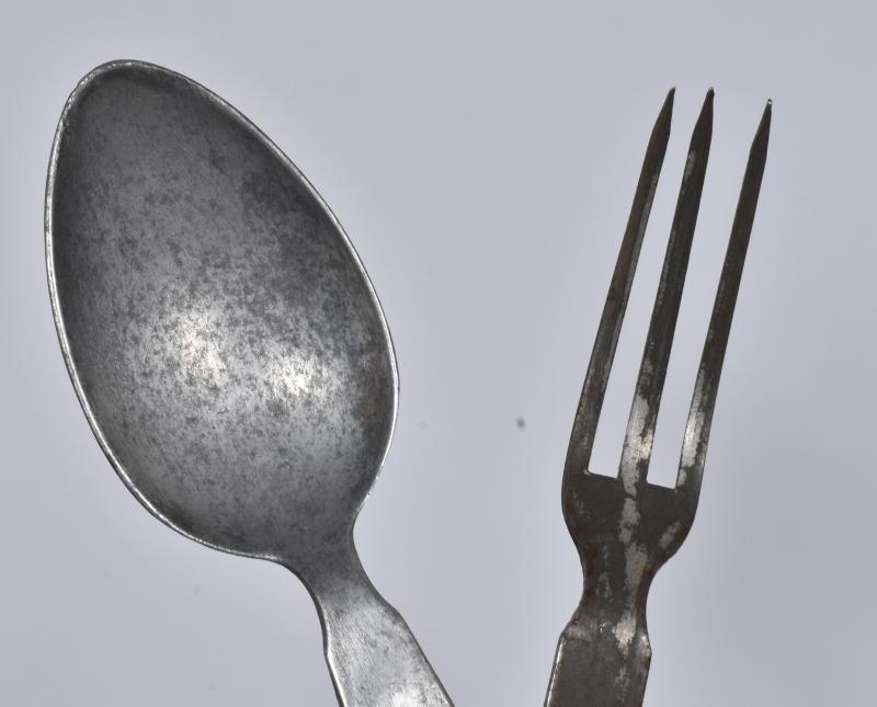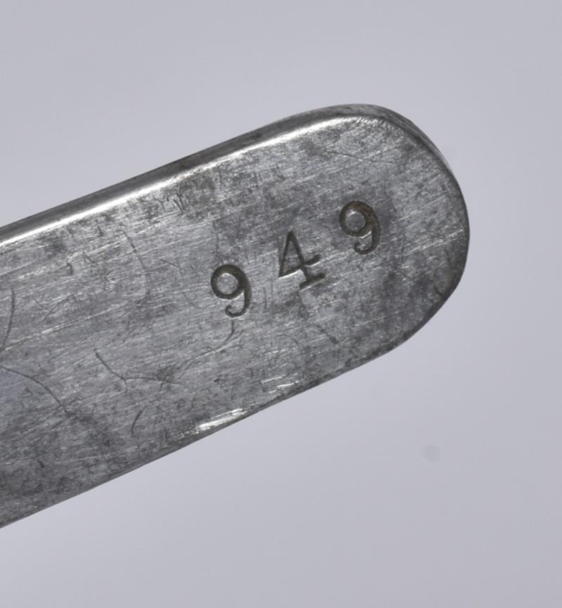 A typical soldiers set with a mans number stamped to one element . Condition is good with a nice degree of age toning to the metalwork .