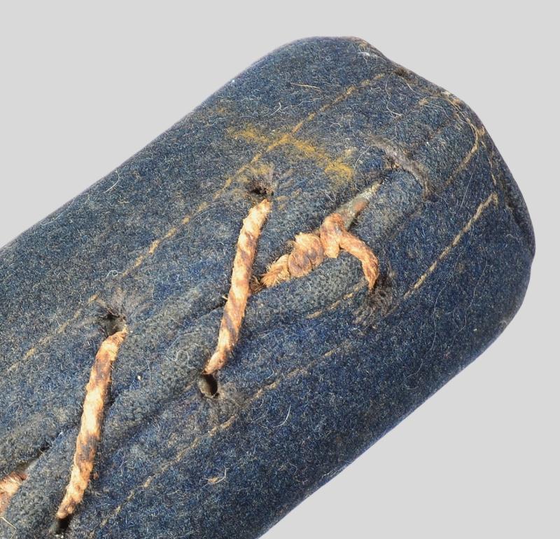 The dark steel blue wool fabric cover is well above average and has not been greatly mothed as with the vast majority . One small 1cm nick to fabric .
