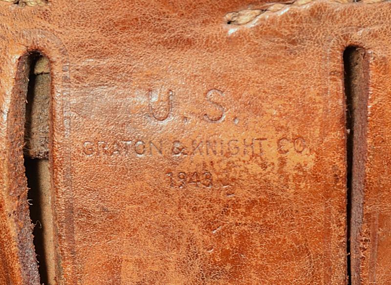 A good used example of the iconic Colt 1911 holster in a mid tone supple leather that retains a clear 1943 date to the rear . The US embossed in oval stamping is still clear with just some typical signs of use to highpoints .