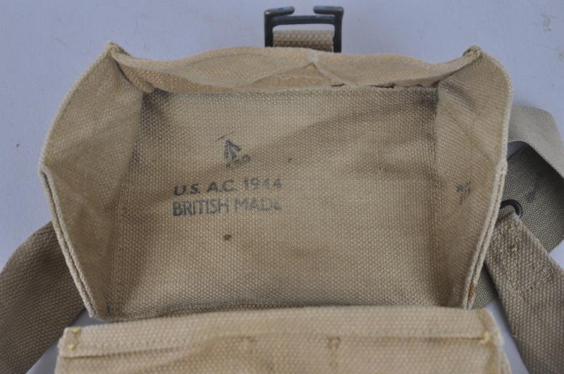 Rare British Made General Purpose bag for extra ammunition etc with very clear 1944 stamp. Appears to be unissued , comes with unmarked utility strap.