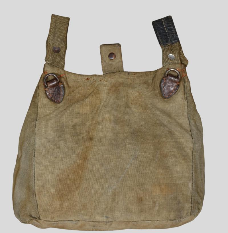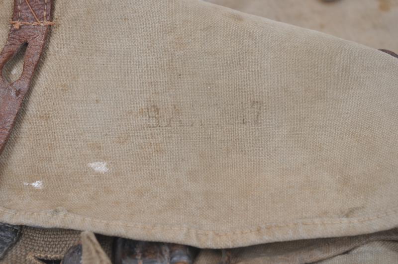 WW1 German breadbag with all original fittings. Trench use with Army Corps marking & 1917 date.