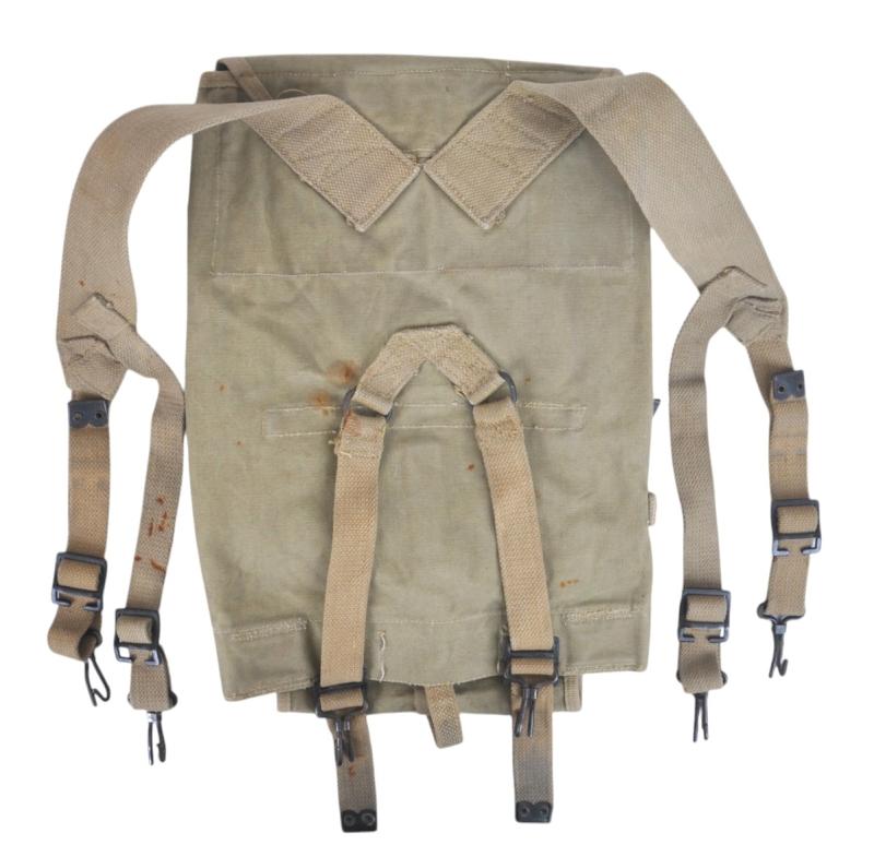 A 'British made' M1928 Doughboy set complete with canteen pouch. Dated 1944 to the pack & meatcan pouch. All in excellent condition.