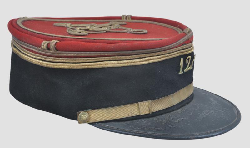 An early WW1 French Kepi of the 121st Infantry Regiment in the Polo style often preferred by younger officers in the August 1914 period.