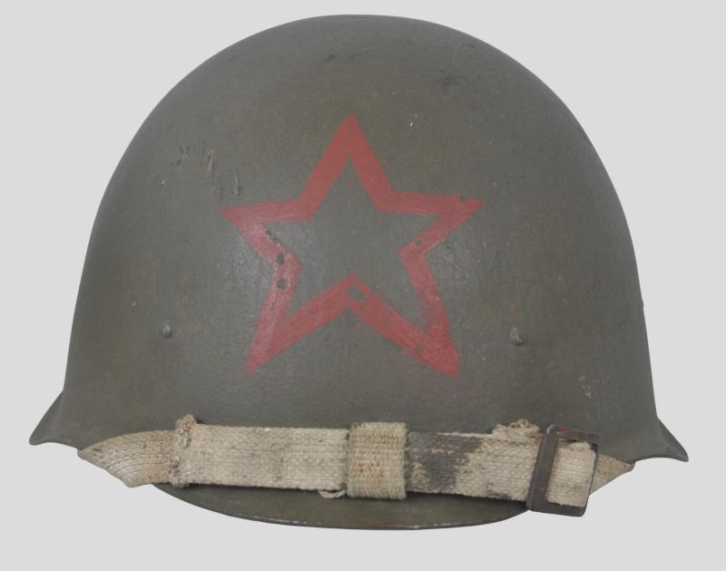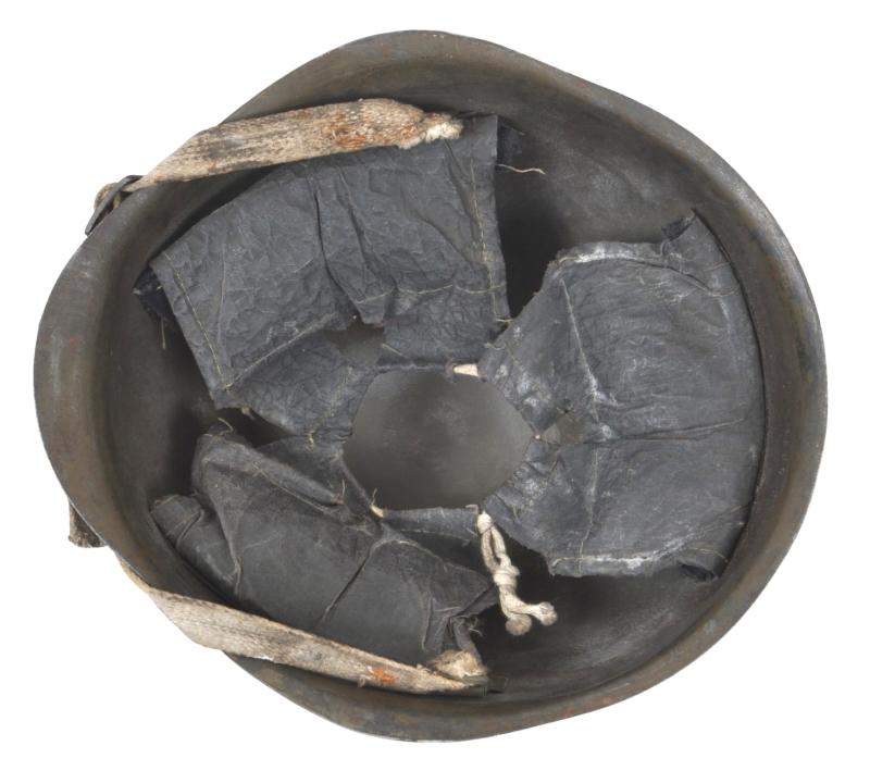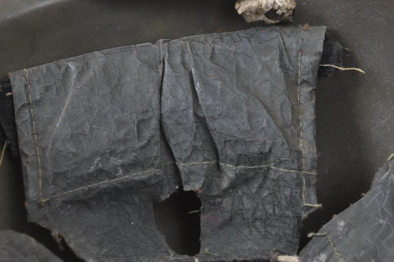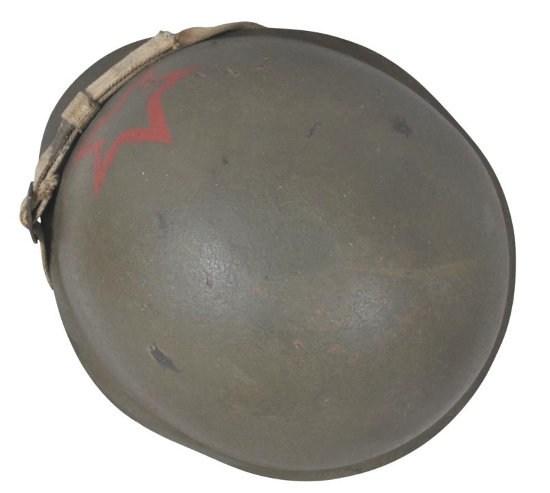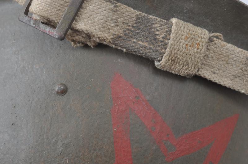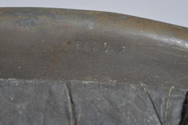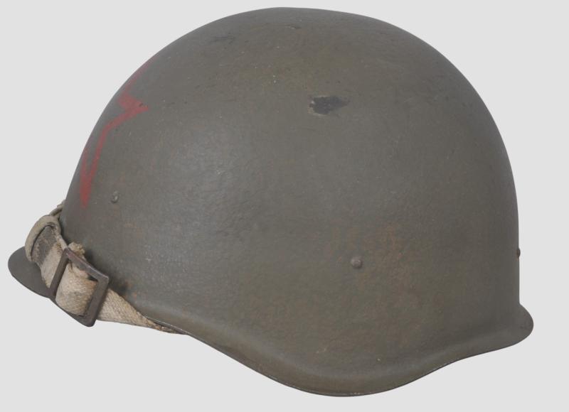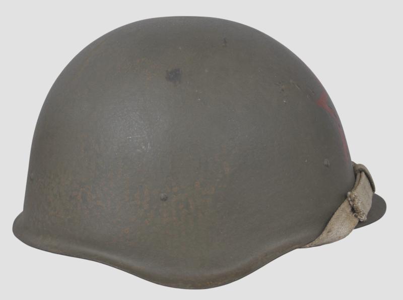 Rare Russian SSh40 Model helmet with batch number date range circa 1943/44. & chinstrap is undyed cotton fibre almost white. This model was used until the end of production of the Ssh40 helmet at the Lysva factory in 1945.