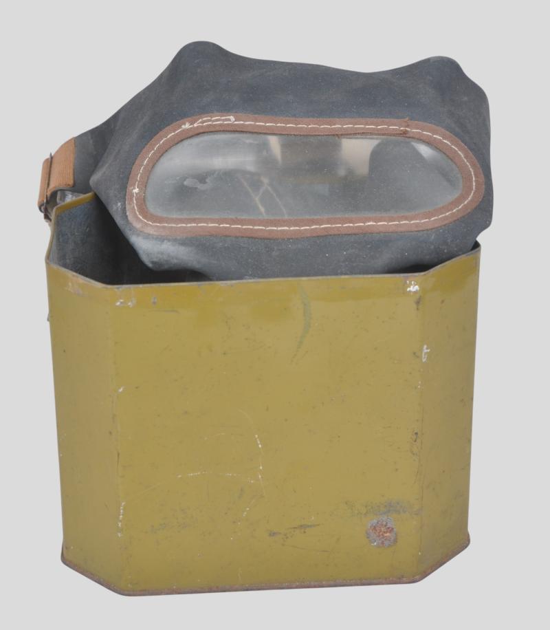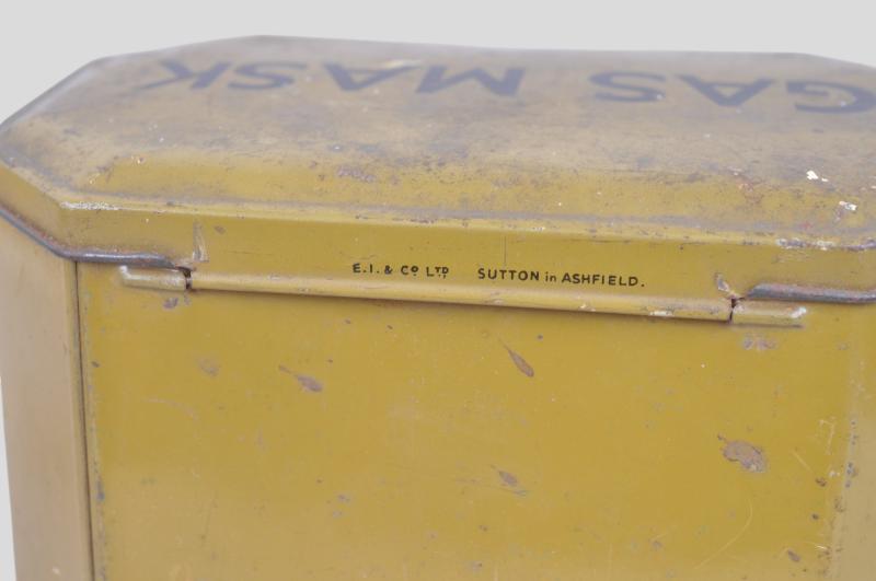 1938 dated civilian gas mask in private purchase tin made by 'EI & Co Ltd'. Rubber in very good supple condition & no damage to tin.