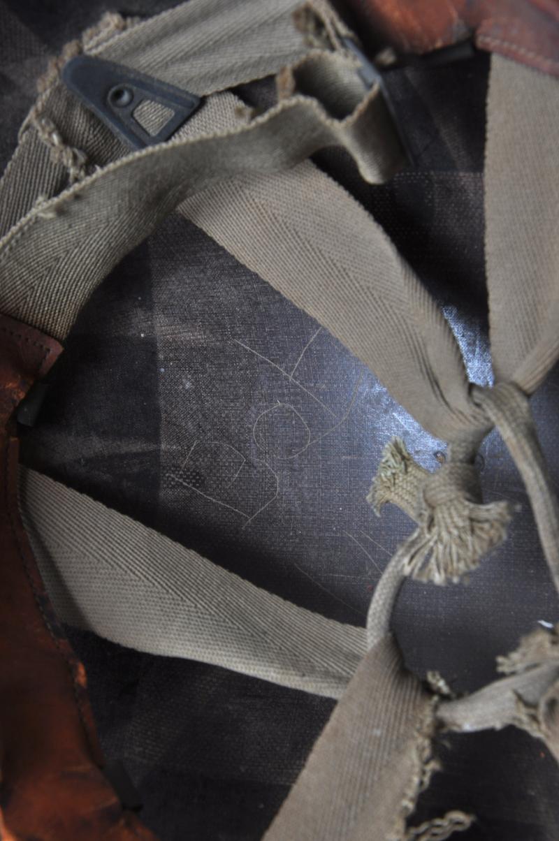This helmet exudes battle wear with correlating age fading to cover that has clearly always been on this helmet shell. To the front & back of the Mitchell camouflage cover is a red tactical insignia patch with underside of one tongue of the cover having a label that reads 'COVER,HELMET, CAMOUFLAGE MARINE CORPS SUPPLY ACTIVITY ' with a series of batch numbers. The name 'Lightner' is handwritten to the underside of another tongue with 'W.J.L' written onto each side of the cover. Helmet shell is a rear seam swivel bales example. Liner is a wartime Westinghouse made example some of these were still in use when the Vietnam war started. Leather chinstrap intact.