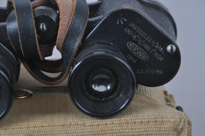 Broad arrow marked & made by 'Kershaw' with red screw points to bottom which indicates the presence of anti misting gas. Come with '37 pattern webbing case dated 1941.