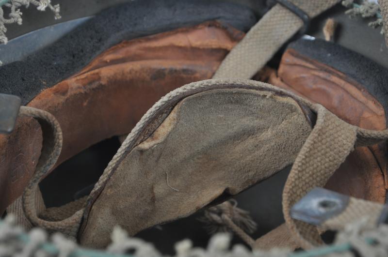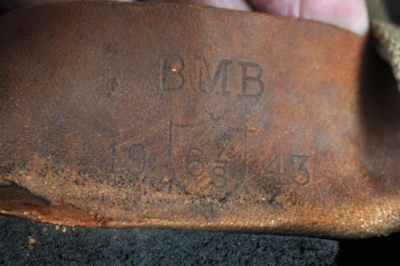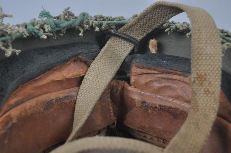 Helmet has its original wartime factory paint to shell with this showing heavy wear to exterior. Webbing straps show the wartime stitch configuration which is explained in the superb reference by Oliver Lock ' British Airborne Headdress ' . Chincup complete with chamois leather lining. There is wear to the leather headband however the 1943 date , maker 'BMB' & size '6 7/8' is visible. Dome crash pad still present to crown & rubber cushions.