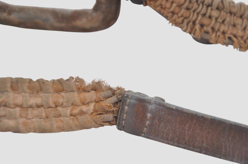 Leather construction facepiece with perspex lenses in good order & leather /canvas sprung neck strap showing wear with some springs exposed in places.