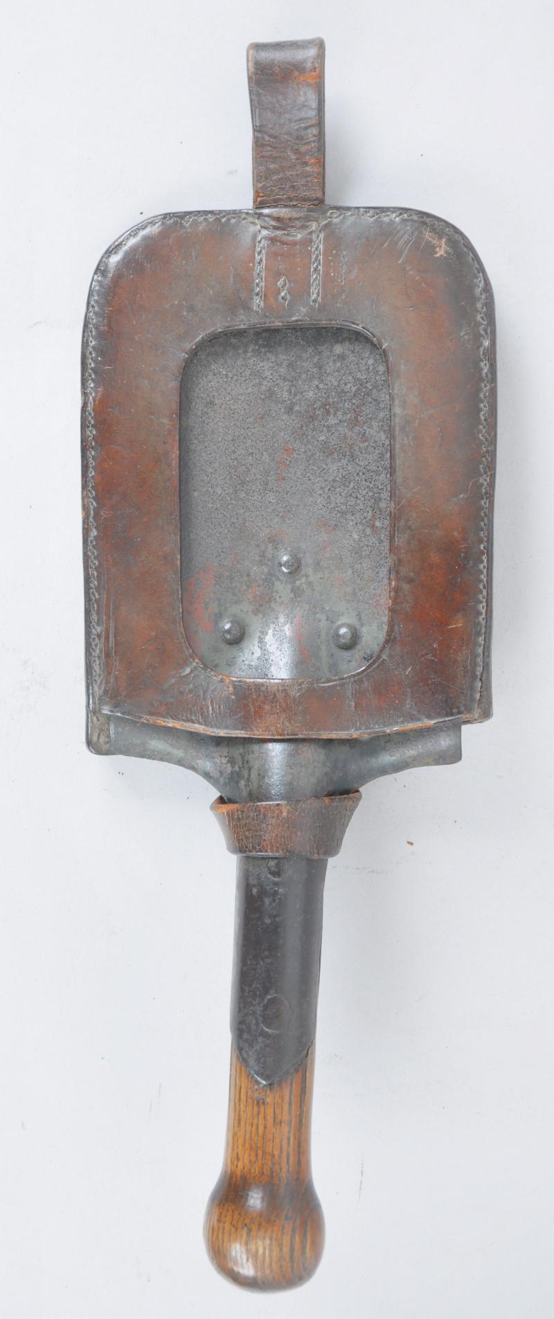 Rare textbook WW1 German MG gunners shovel complete with its 100% correct brown leather carrying case.