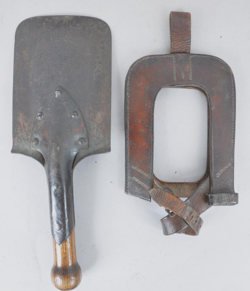 Leatherwork in excellent supple undamaged condition with shovel also very good bearing green paint still visible in places.