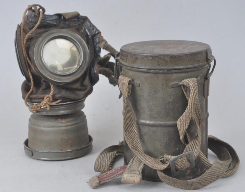 WW1 German Gas Mask Complete With Original Carrying Straps & Schnappdeckel Smoke/Arsenic Filter