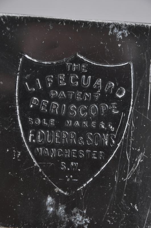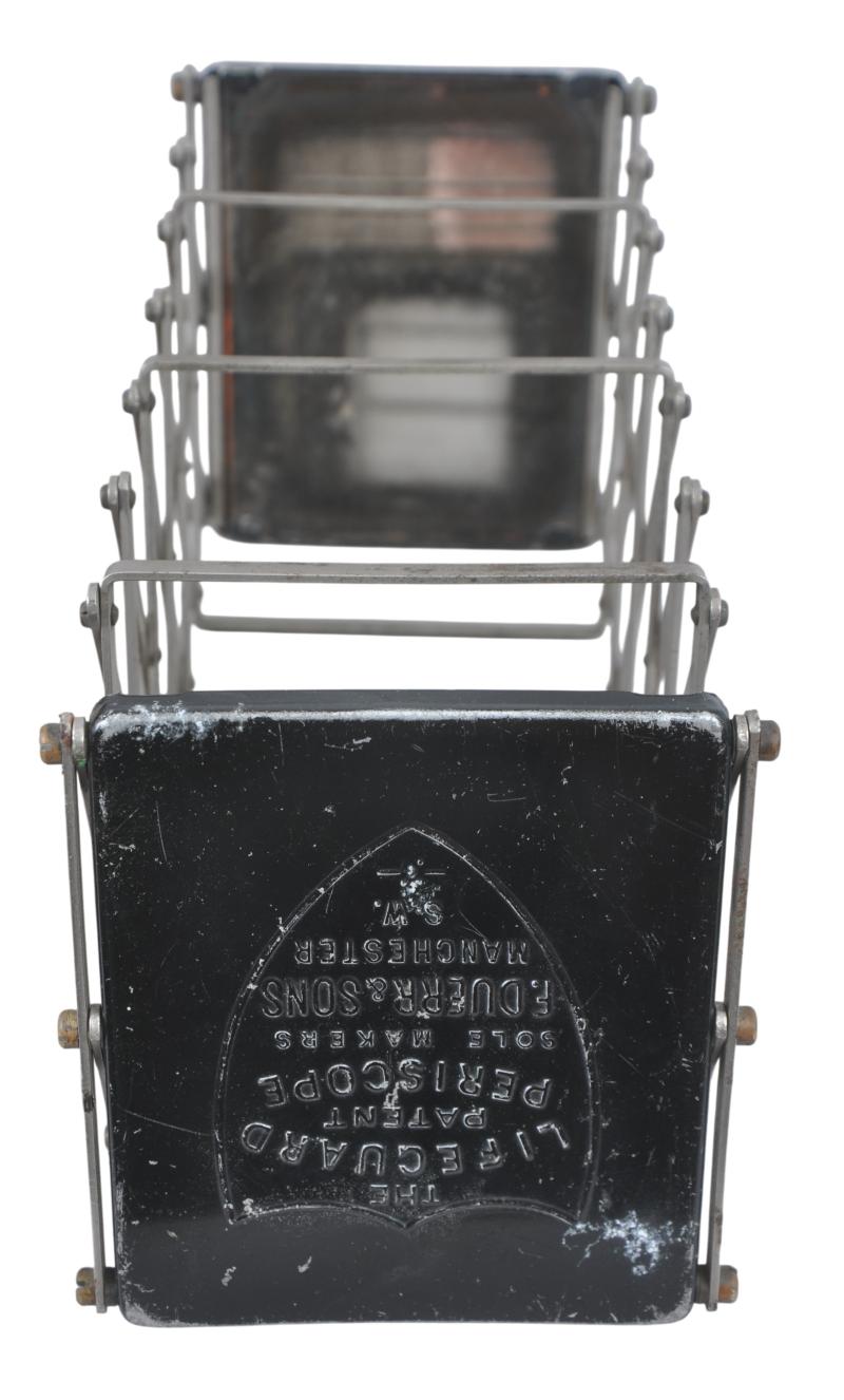 Officers and soldiers were offered a huge range of products some good and many bad . This particular commercial product was a huge success and met with very good sales . The periscope comes with its fitted belt mountable carry pouch in canvas . The device is very good with typical age spotting to the mirrors . The makers trade decal is excellent as is the black japanned finish metalwork .