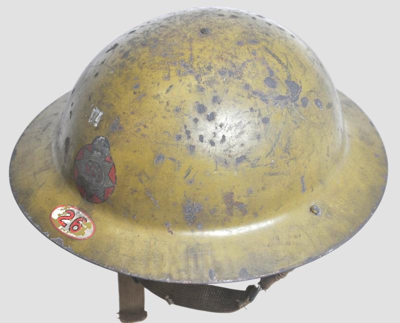 This is a very early issue the helmet being of an early rimless Mk1 pattern these were issued before the MkII became standard issue. Factory painted in a green hued khaki with undisturbed liner bolt to top of helmet. Interior has issue liner with web chinstrap having elasticity remaining.